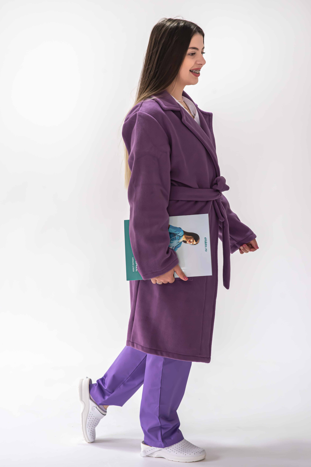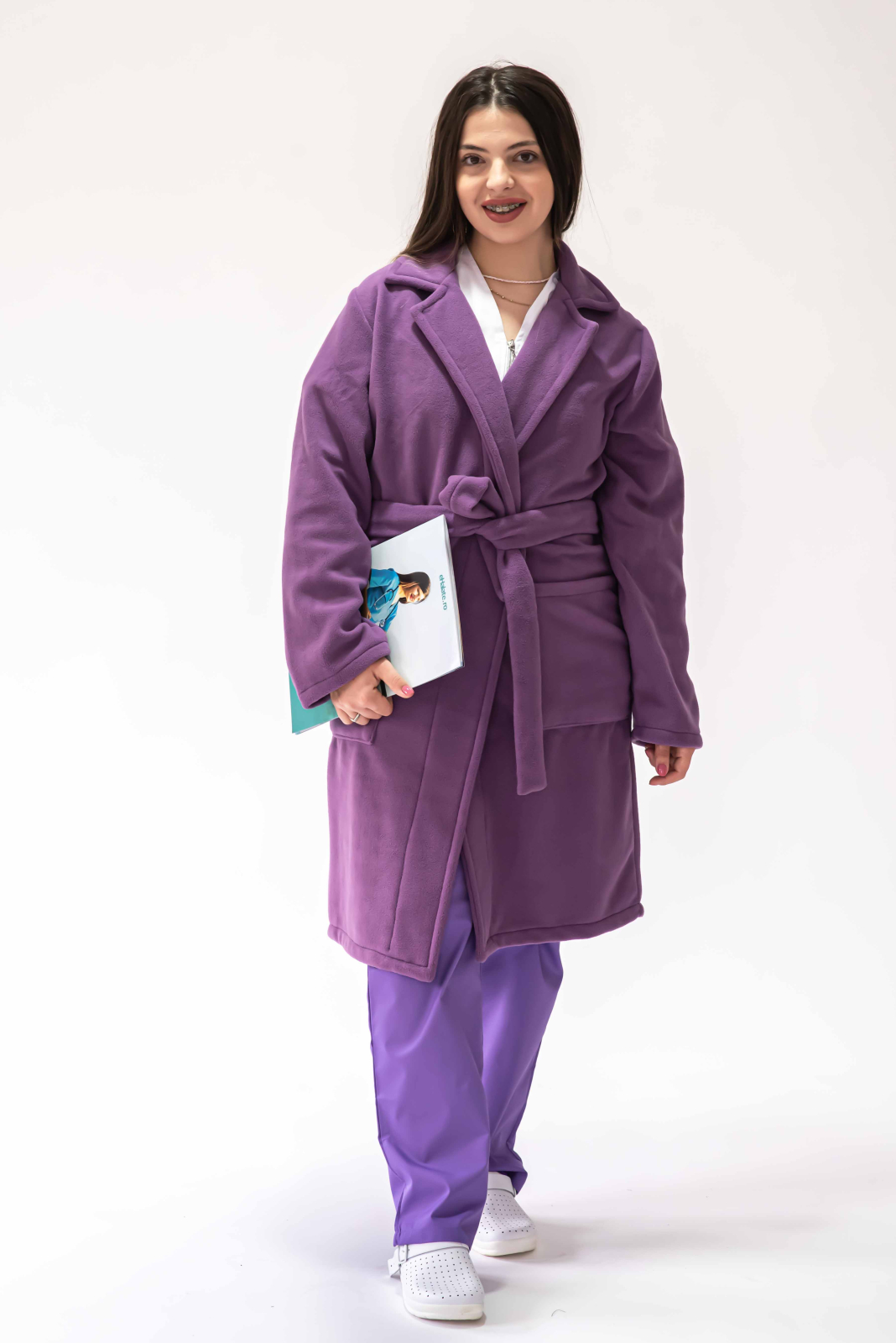 - Are cordon in talie, maneca lunga si 2 buzunare.
